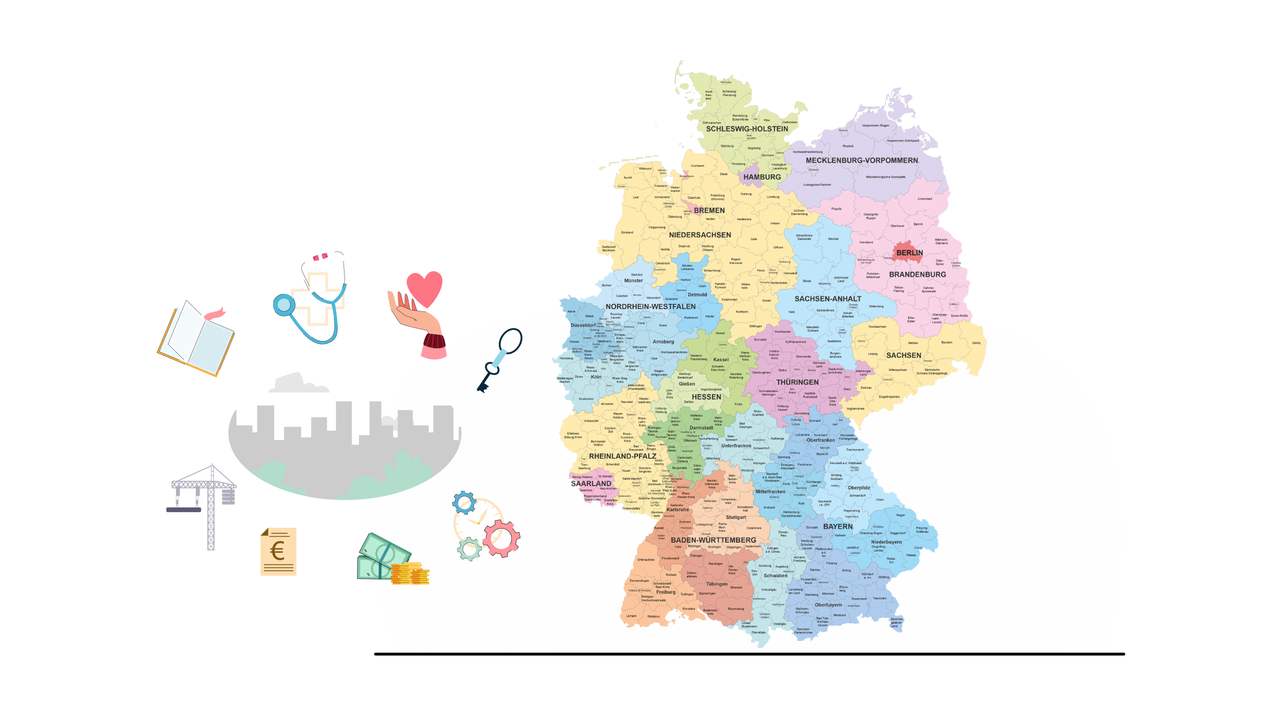 Öffentliche Infrastrukturen werden von allen staatlichen Ebenen gestaltet: vom Bund, den Bundesländern und den Kommunen (Städte, Kreise und Gemeinden). Die Kommunen stellen einen erheblichen Teil der Infrastrukturleistungen zur Verfügung (Heinrich-Böll-Stiftung, 2020, S. 14). Sie sind im Rahmen der kommunalen Selbstverwaltung nach dem Sozialstaatsprinzip (Grundgesetz [GG], 1949, Art. 20) verpflichtet, ihre Einwohner*innen ausreichend mit wirtschaftlichen, kulturellen und sozialen Dienstleistungen zu versorgen.